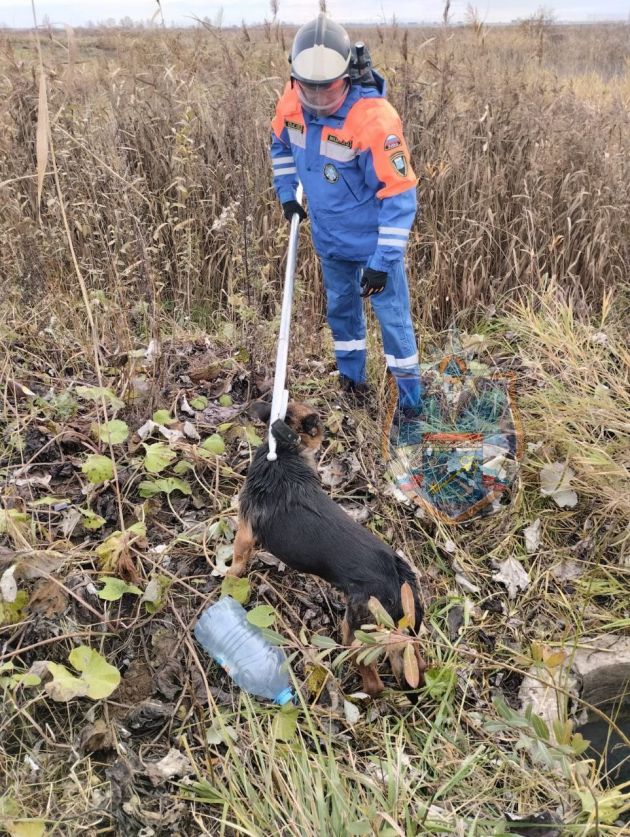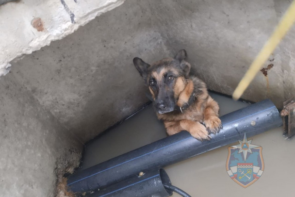 На сигнал отреагировала дежурная смена поисково-спасательного отряда Тосно. Группу людей животное встречало с грустными глазами, держа передние лапы на трубе.