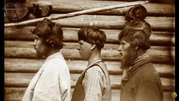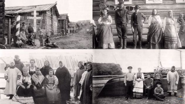 "Это Архангельская или Вологодская губернии. Похоже на Поморье, может быть и Карелия. На это указывают вязаные узорные свитеры, пояса из веревки или тканого шнура, шерстяные штаны и пиджаки с двойным рядом пуговиц", – говорит она.