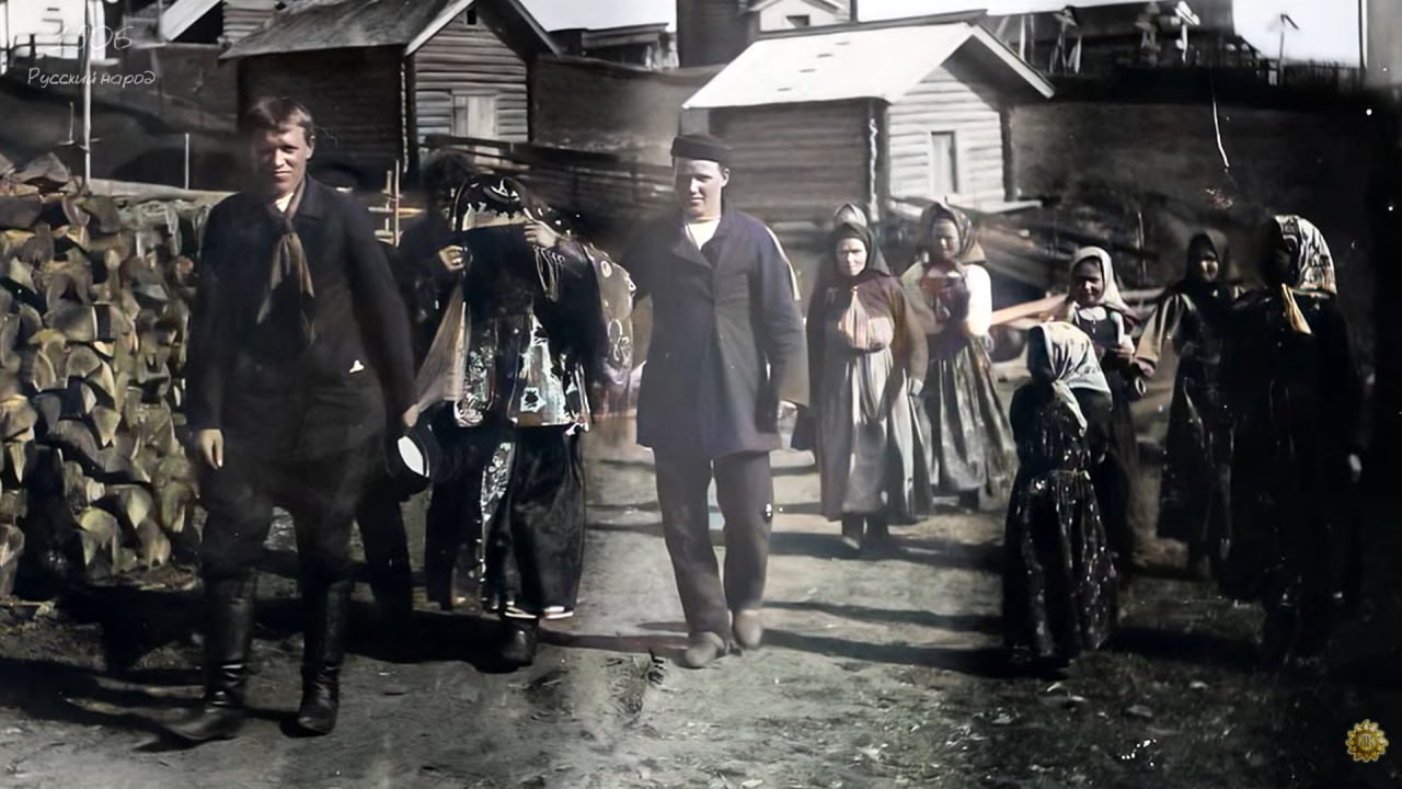 "Это Архангельская или Вологодская губернии. Похоже на Поморье, может быть и Карелия. На это указывают вязаные узорные свитеры, пояса из веревки или тканого шнура, шерстяные штаны и пиджаки с двойным рядом пуговиц", – говорит она.