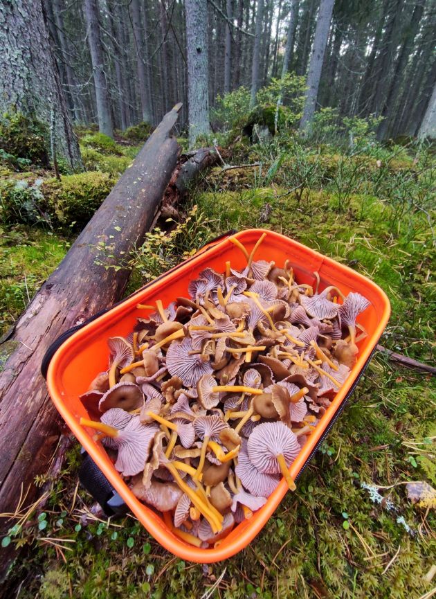 Как пишет в паблике ВК "Грибы и грибники СПб" Юлия Алексеева, это - лисичкаа трубчатая (ворончатая, трубковидная), Гляньте, сколько набрали: