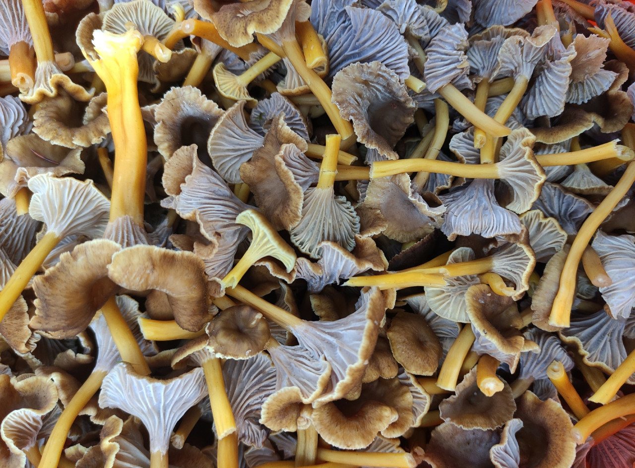 Как пишет в паблике ВК "Грибы и грибники СПб" Юлия Алексеева, это - лисичкаа трубчатая (ворончатая, трубковидная), Гляньте, сколько набрали: