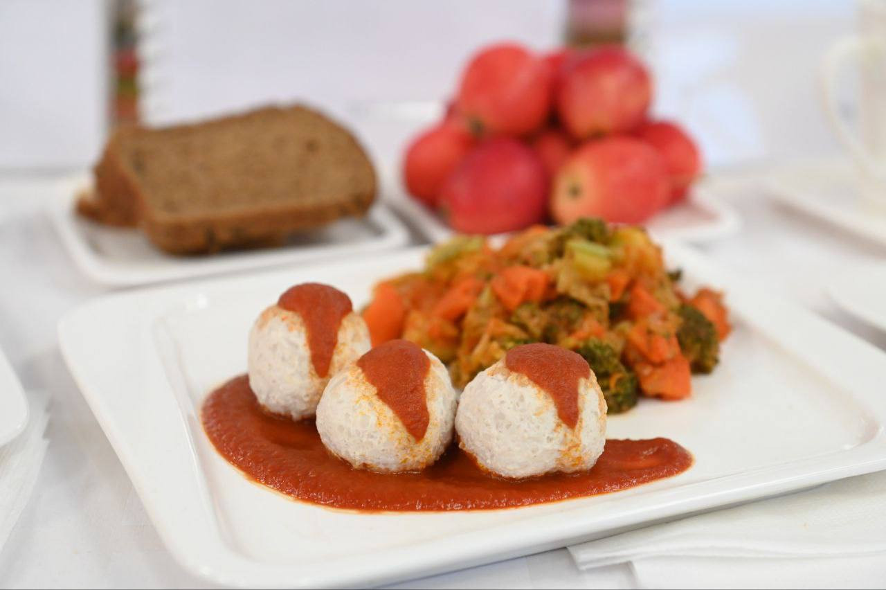 На конкурс участники подготовили не только традиционные школьные обеды. Есть блюда, которые представлены как в ресторанной подаче. Например, по-особенному нарезаны овощи или с помощью шоколадной крошки сделали силуэт вилки и ложки. Есть и десерты в бокалах. Многие участники на презентацию также надели национальные костюмы.