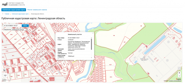 Тезис легко проверить с помощью публичной кадастровой карты Ленобласти. Кадастровая стоимость сейчас практически совпадает с рыночной. Получается, что за сельхозземлю площадью 114 квадратов, выделенную под огороды, положено 102 400 рублей.