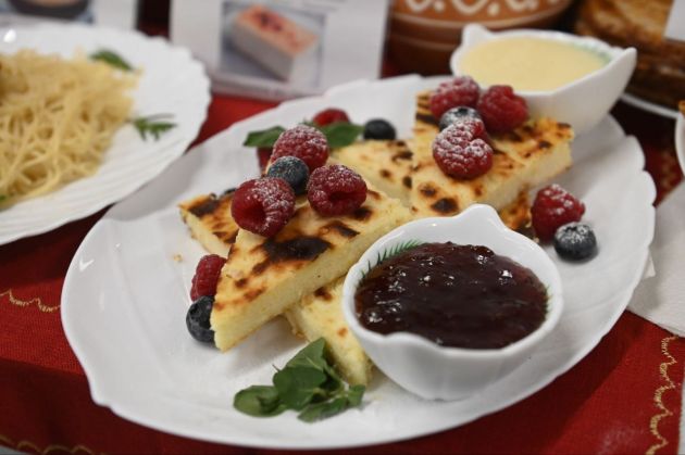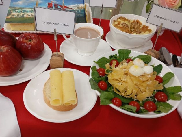 Школа из Сыктывкара приготовила творожные сырники и яблоки запеченные с творогом, из Мордовии – пирожки "Как у бабушки", из Салехарда – пасту Болоньезе. Также можно увидеть "макароны с сыром", которые оформлены листьями шпината и помидорами черри, и творожную запеканку, украшенную малиной, голубикой и мятой, и с двумя соусами.