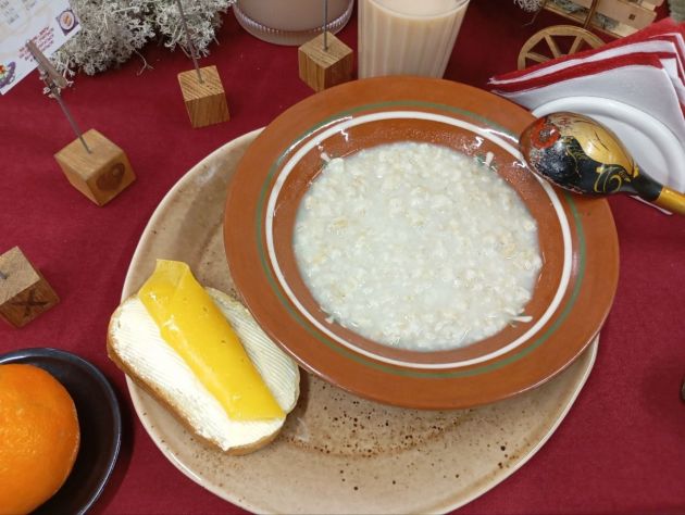 Аппетитно выглядят каша с сухофруктами и грецкими орехами и бутерброды с сыром.