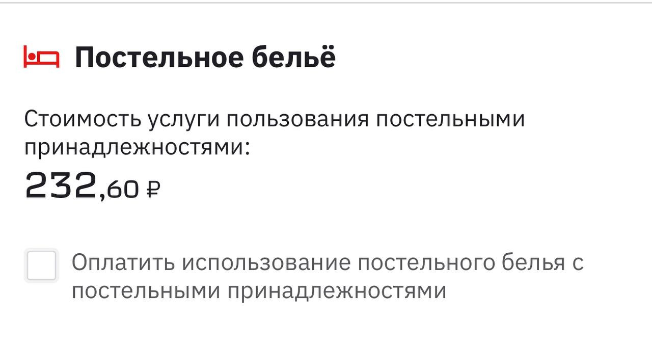 Как объяснили в ФПК, ранее отметка о согласии с приобретением постельного белья ставилась автоматически, но с 1 сентября 2025 года правила изменились: услуга предоставляется, только если пассажир самостоятельного поставит галочку.