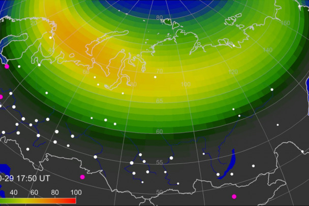 "Наиболее благоприятные условия складываются в Мурманской и Архангельской областях, в Карелии, в ЯНАО (Салехард, Новый Уренгой) и республике Коми. Также повышены вероятности для Санкт-Петербурга и Ленинградской области", - говорится в сообщении.