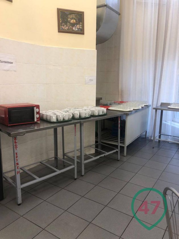 Как выглядит столовая, можно посмотреть на фото. В зале есть раздача, а также буфет. На подносах стоят кружки и стаканы.