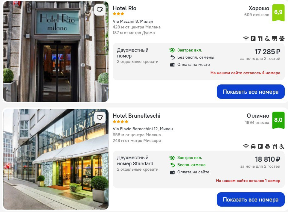 Забронировать билеты и отели можно через отечественные агрегаторы, которые принимают российские карты. Например, в Риме номер в отеле на двоих на 10 ночей с завтраками и недалеко от центра (без учета количества звезд) в новогодние даты обойдется от 130 тысяч рублей. Отели Милана – от 12 000 рублей за ночь, во Флоренции, которая славится своими рождественскими ярмарками, можно найти варианты от 9000 рублей за ночь. Кстати, на знаменитом горнолыжном курорте во французских Альпах вариантов на начало января осталось уже не так много – ночь в отеле обойдется не дешевле 100 тысяч рублей. Цены доходят до 1,5 млн за ночь. В некоторых случаях деньги при отмене брони не возвращаются.