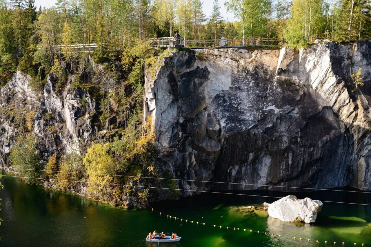 Поезд из Петербурга довезет вас до финской архитектуры — города Сортавала. В разные годы места принадлежали Швеции и Финляндии, что оставило большой отпечаток. Обойти причудливые улочки, несколько перекликающиеся с выборгскими, можно за несколько часов, останавливаясь у здания бывшей ратуши, Дома Берга, Дома Леандера, заглянув в исторический парк "Бастионъ" на окраине. А затем добраться до мраморного каньона в тридцати километрах севернее — сесть на ретропоезд на паровозной тяге со стилизованными интерьерами "Рускеальский экспресс", который понравится фанатам вселенной "Гарри Поттера". В парке можно перелетать через каньон на троллее, кататься на сапах, лодках и квадроциклах, спускаться в пещеры и шахты.