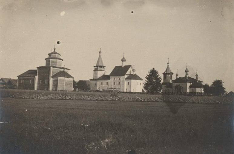Ранее на этом месте был Озерской погост, включавший три деревянных храма. До наших дней дошли только два: Успения Богородицы 1689 года и Богоявления – начала XX века. Перестроены были оба. В Здании Богоявленской церкви сейчас – Дом культуры, а Успенская в советские годы была превращена в магазин и склады.