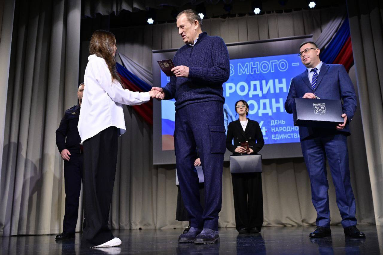 Глава региона также поучаствовал во вручении паспортов школьникам. По словам губернатора, им "предстоит также беречь и защищать Родину, как семьям их отцов, дедов и прадедов".