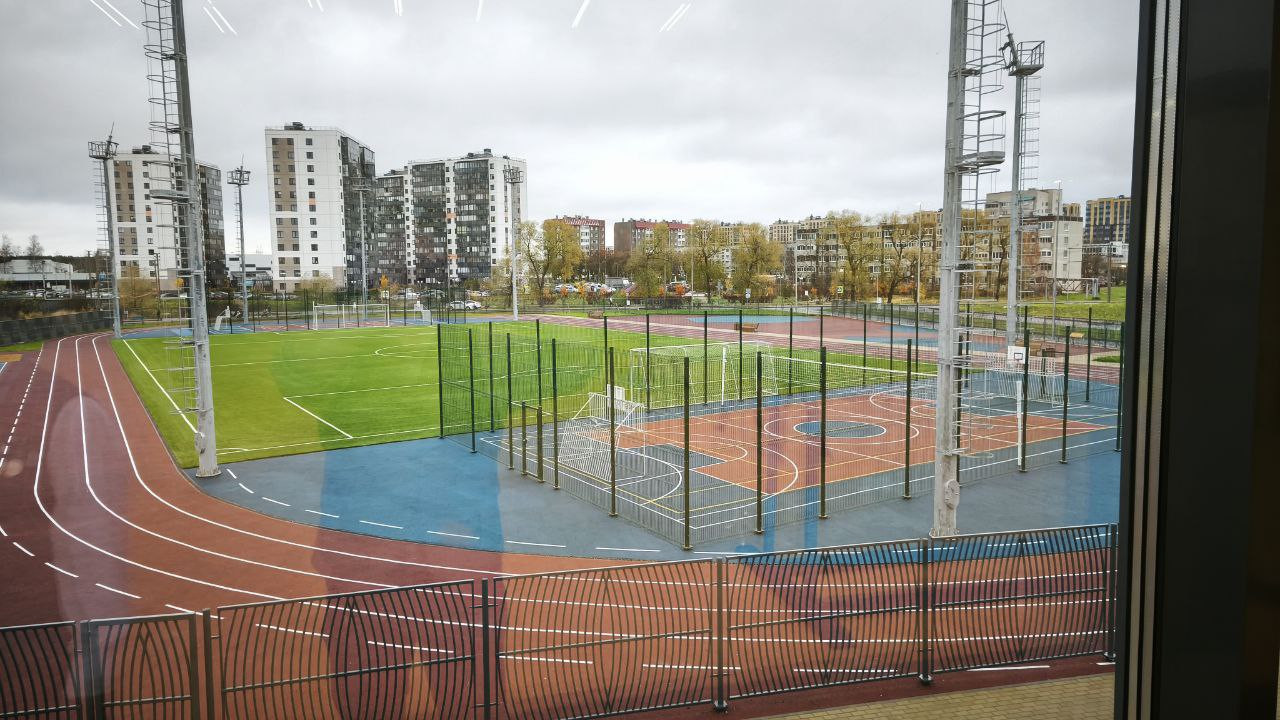Помимо трех спортзалов внутри школы - тренажерного, гимнастического и зала командных видов спорта - в спортивный блок школы входит собственный стадион, футбольное поле, беговые дорожки и уличные тренажеры. Во внеурочное время заниматься на стадионе смогут и местных жители.