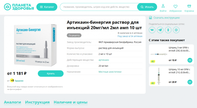 В городском комитете по здравоохранению на тему смотрят иначе. Там опираются на клинические рекомендации Минздрава России и раздел перечня жизненно важных лекарственных препаратов (ЖНВЛП), в котором перечислены средства для местной анестезии. Артикаина в списке не было и нет, а вот лидокаин имеется.
