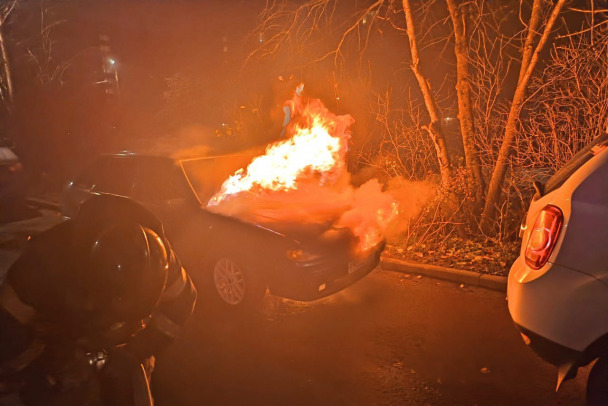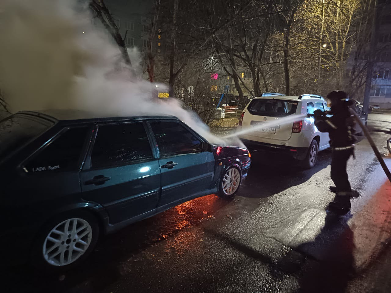 Огнем охватило салон, моторный отсек и покрышки. Судя по кадрам с места, загорелась "Лада". По предварительным данным, никто не пострадал.