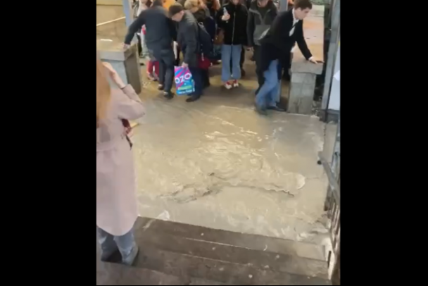 Напомним: сегодня утром лестница №19 со стороны бульвара Менделеева и подземный переход на станцию метро "Девяткино" оказались под водой и были закрыты для пассажиров. Прорвало трубу. Вход осуществляется через три остальных лестничных входа.
