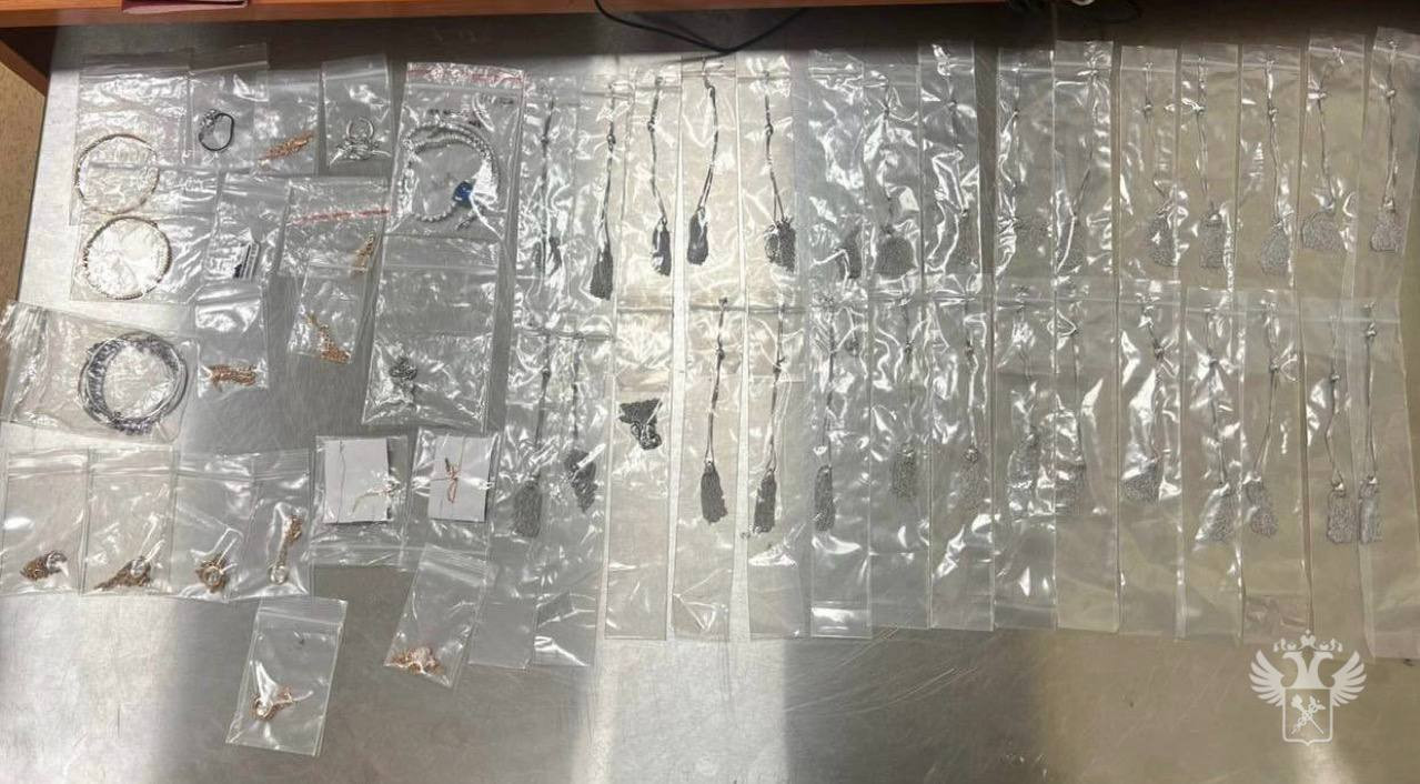 "В ходе досмотра в чемодане гражданки обнаружено 30 браслетов, а в рюкзаке - 2 браслета, 2 пары серег, 9 кулонов и подвеска из драгоценных металлов. Также женщина предъявила инспектору колье с кулоном", - отмечается в сообщении.