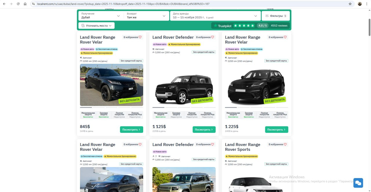 По данным портала GlobalPetrolPrices, литр бензина в ОАЭ чуть дешевле нашего. Примерно 2,51 дирхама – 55 рублей 38 копеек. Самый недорогой Range Rover семь литров бензина на 100 километров. Следовательно, на минимальное расстояние пришлось бы потратить 387,66 рублей. Полный бак 80-90 литров - 4400-5000 рублей.