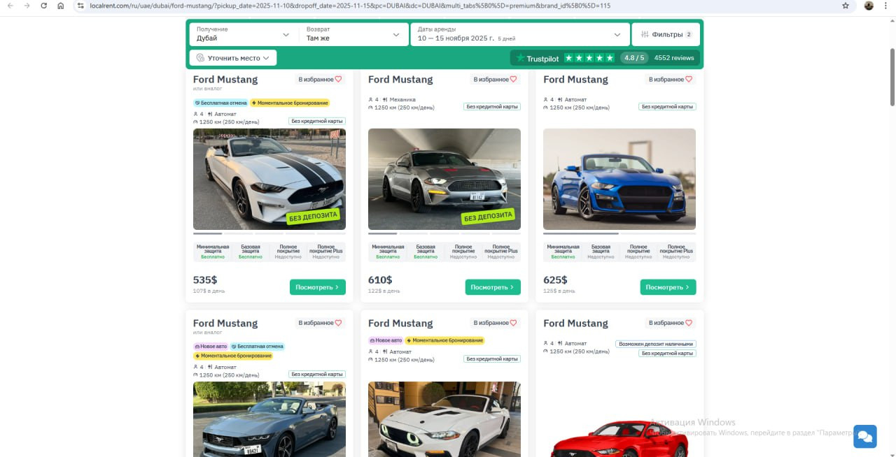 Для перемещений между эмиратами нужен автомобиль. По данным местных сервисов аренды, пять дней аренды Range Rover - от 835 до 4500 долларов, то есть 67700 - 364950 рублей. К слову, масл-кар Ford Mustang дешевле - 535-1000 долларов, или 43400 - 81120 рублей.