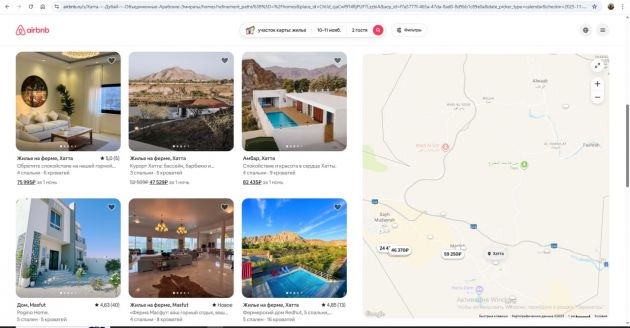 По прилету нужно где-то поселиться. В городе Хатта, эмират Дубай, с жилым фондом не разгуляешься. Например, единственная вилла Hatta Montana с бассейном (а других в объединенных эмиратах нет) - 55250 рублей в сутки. Остальные варианты - подальше от этой провинции: Хаур-Факкан, Эль-Фуджайра, Масфаут, Нахва - в среднем от 40 тысяч рублей за сутки в номере гостиницы до 257 тысяч за дом. Если опираться на среднюю стоимость в 75 тысяч рублей в сутки, то неделя в Дубае - 525 тысяч рублей.
