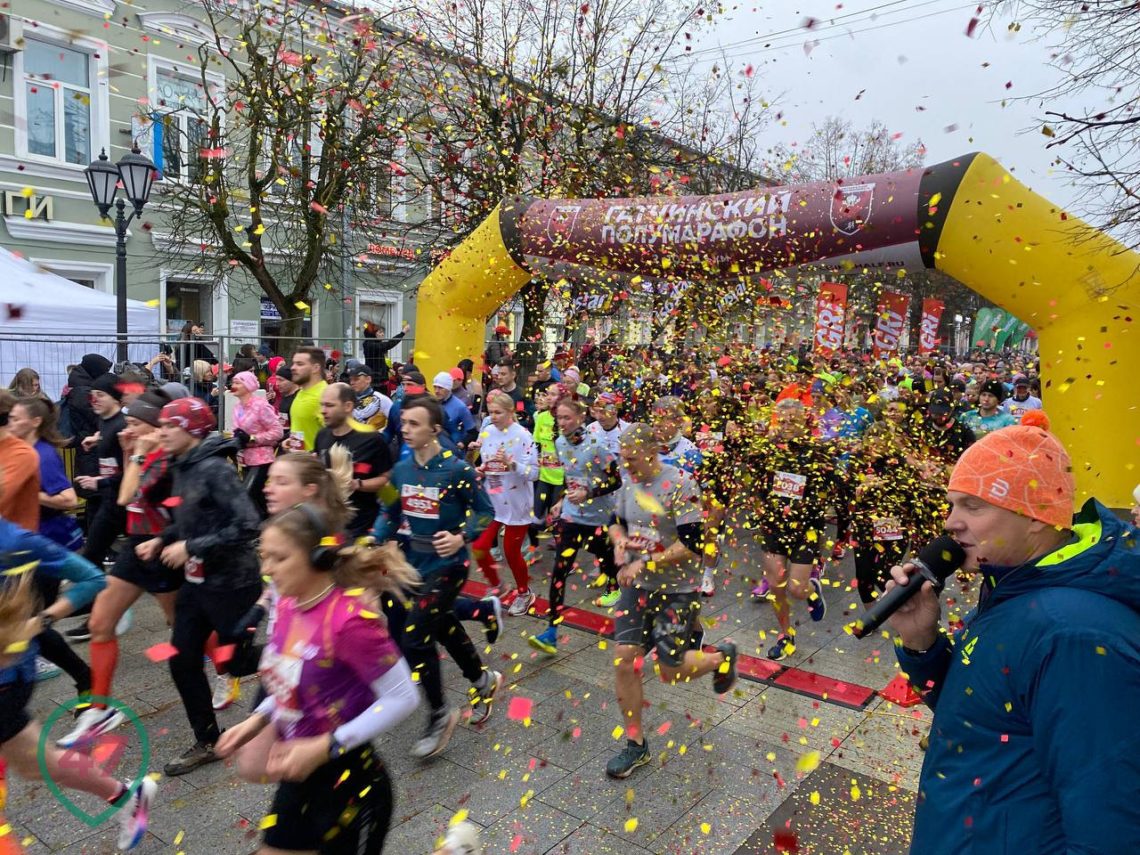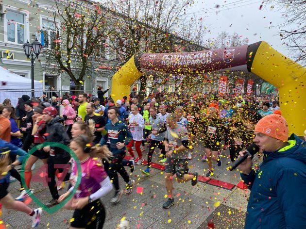 Первыми со старта на Соборной улицы убежали те, кто выбрал для себя дистанцию в 10 километров. Им в спину дышат участники забега на два километра. Сам полумарафон, то есть забег на 21,1 километра, начнётся в полдень.
