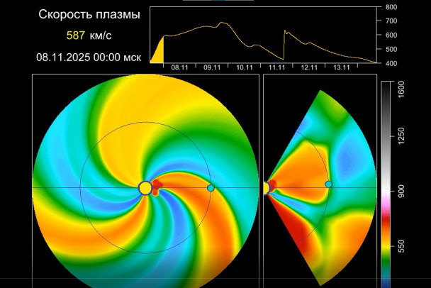 Как сообщает лаборатория солнечной астрономии ИКИ РАН 9 ноября, специалисты составили модель воздействия Солнца на Землю до середины следующей недели. За этот период к нашей планете подойдут два выброса плазмы: от вспышки М и X.
