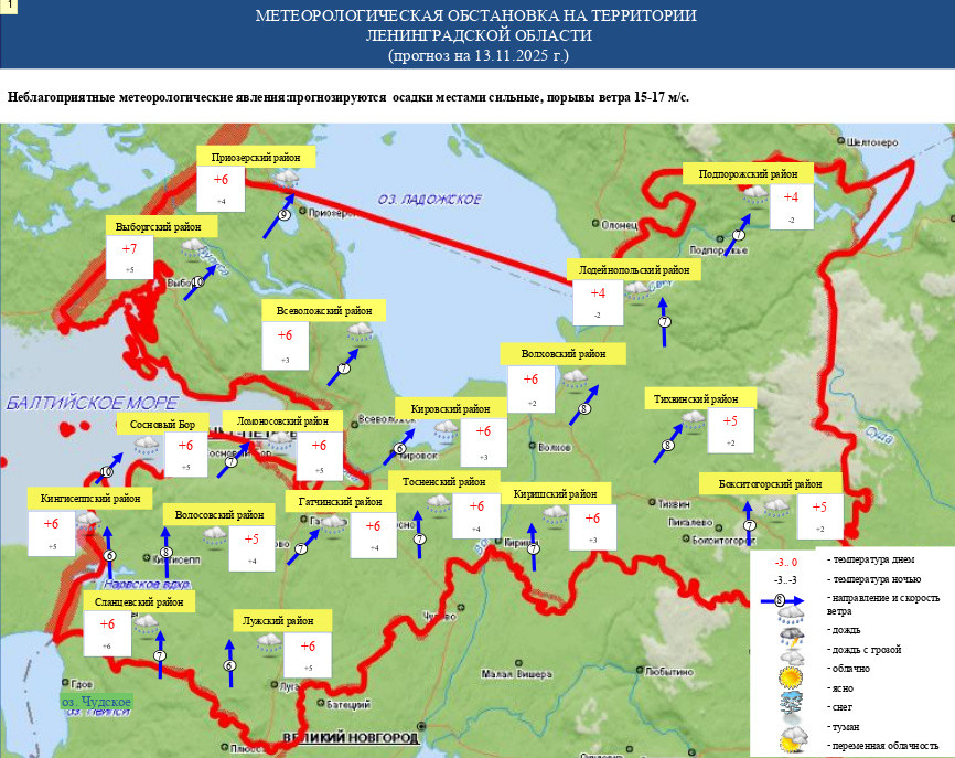 В Ленобласти с ночи начнется дождь. Осадки усилятся днем.