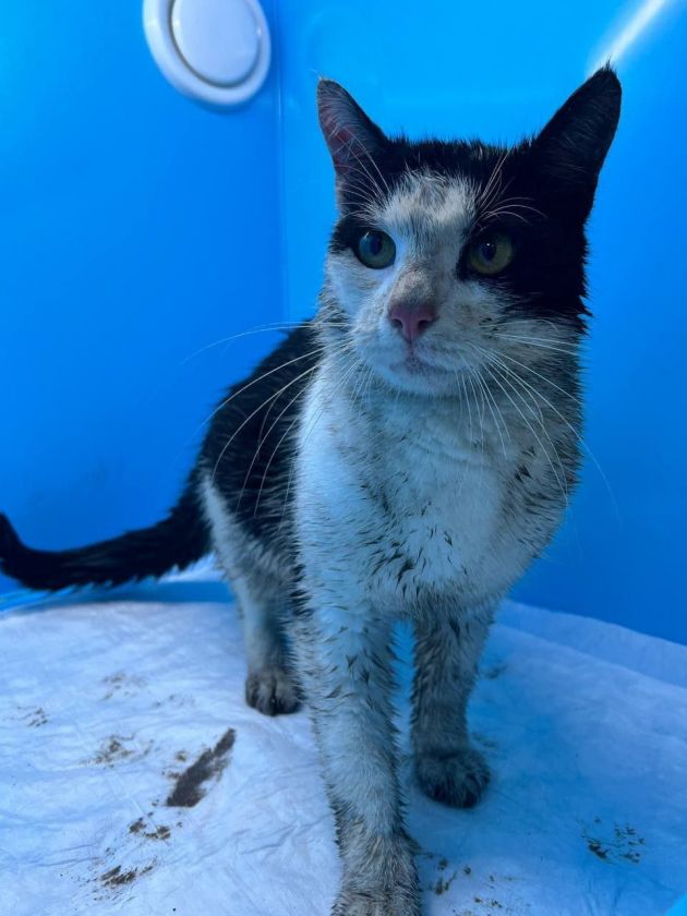 В конечном итоге мокрый и грязный кот оказался в переноске.