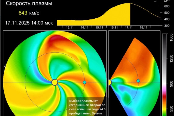 Сейчас специалисты исключают ее влияние на Землю, несмотря на необычайную мощность, поскольку выброс идет мимо планеты. Но при этом некоторая вероятность краевого касания не исключена, то есть может быть слабое или среднее воздействие.