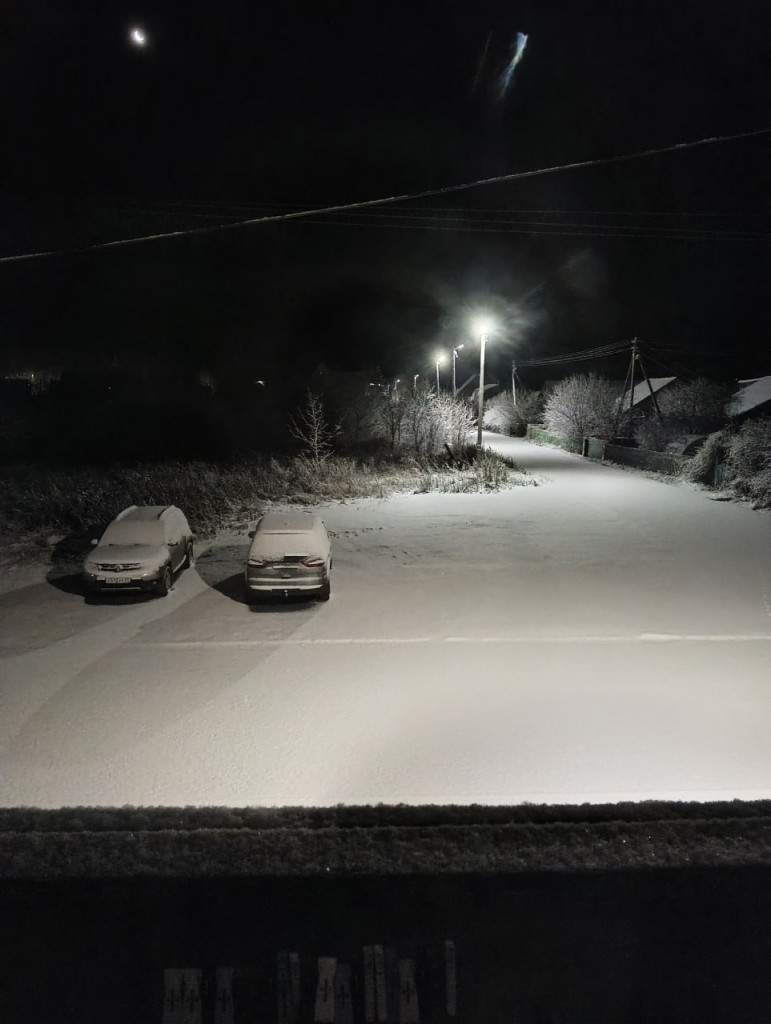 В Гатчинском, Кировском, Тихвинском и других районах снег начался в пятницу вечером. А в Тихвине местные жители наблюдали побелевшие деревья и газоны еще накануне утром, снегопад возобновился спустя сутки.