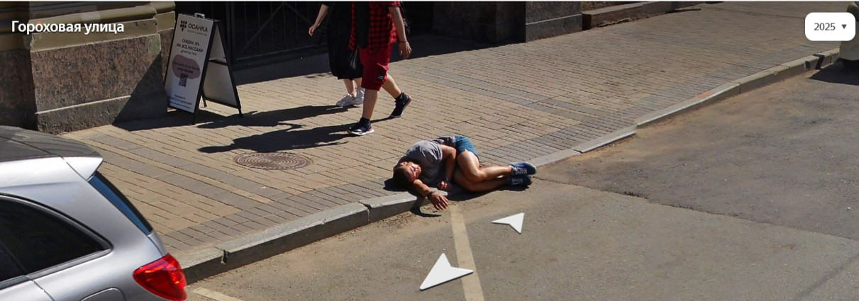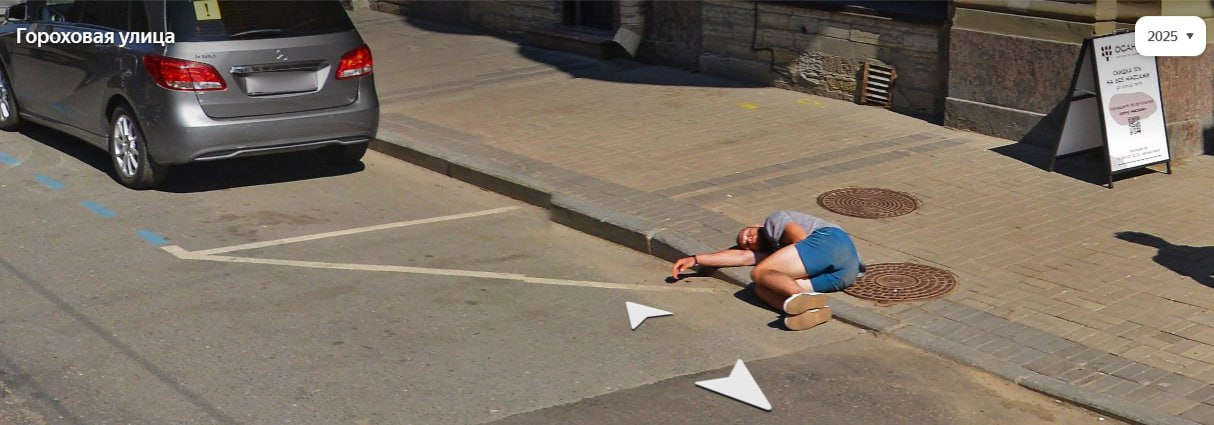 Переутомлённого лежебоку на поребрике напротив знаковой арки на Гороховой улице в Петербурге зафиксировала строгая камера панорамомобиля. Молодого человека в "позе эмбриона" у дома № 64, где музей-квартира Григория Распутина, можно увидеть на летних обновлённых 2025-го года кадрах сервиса "Яндекс Панорамы".