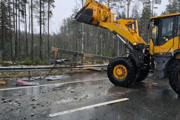 Частично возобновлено движение на участке федеральной трассы в Приозерском районе Ленобласти. После наезда грузовика на опору для машин открыта одна полоса.