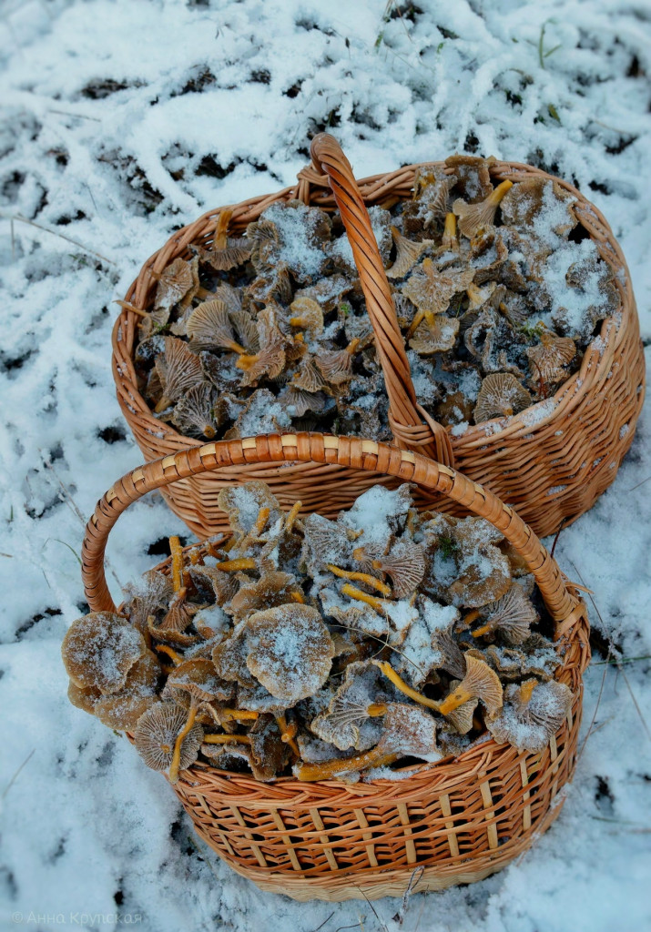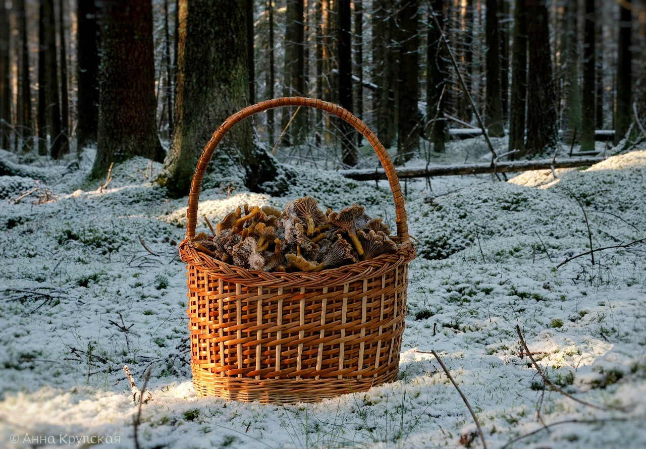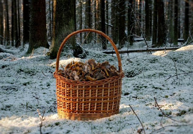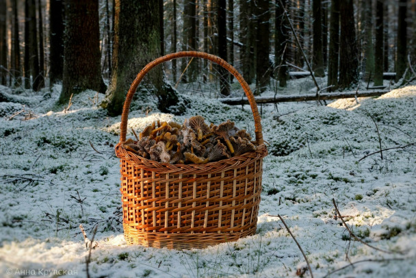 Последние грибы в большом количестве выносят из лесов в Петербурге и Ленобласти. Первый снег не смущает собирателей подножного корма.