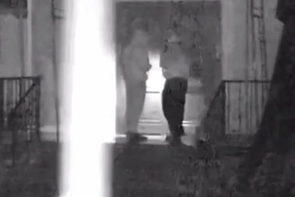 Камера сняла, как трое молодых людей подбегают к зданию церкви и пытаются открыть двери. Когда это не удается, двое с фонарем отправляются к другому строению и заходят внутрь, пока их товарищ лазит по строительным лесам. Спустя примерно 30 секунд они выходят не с пустыми руками.
