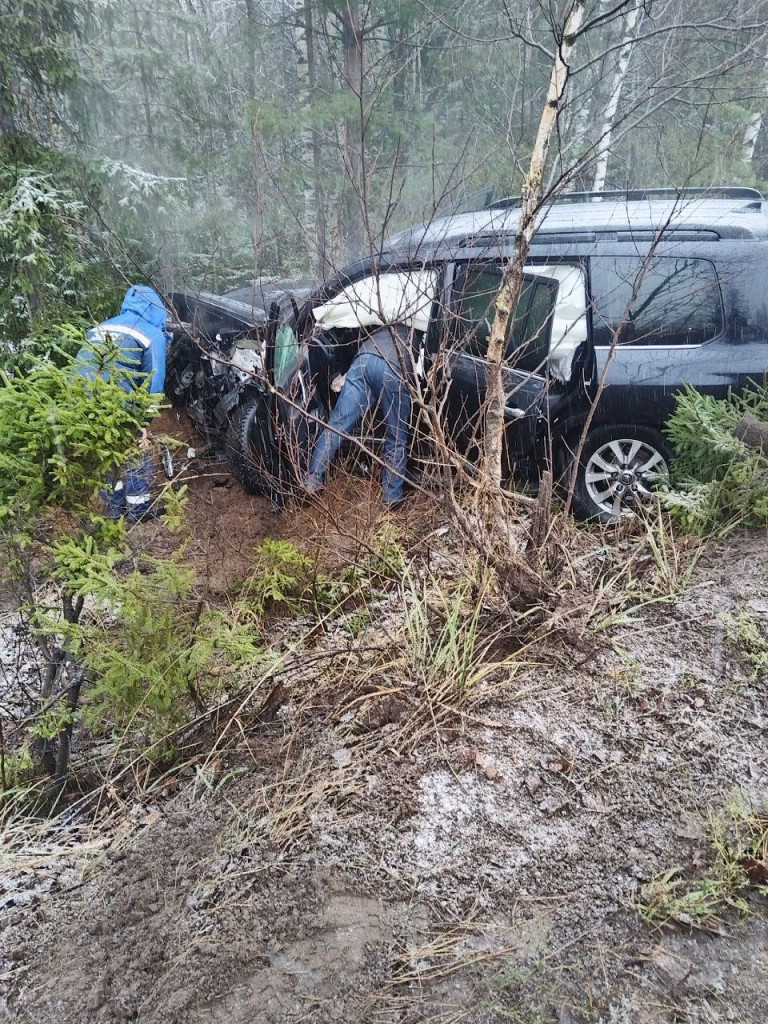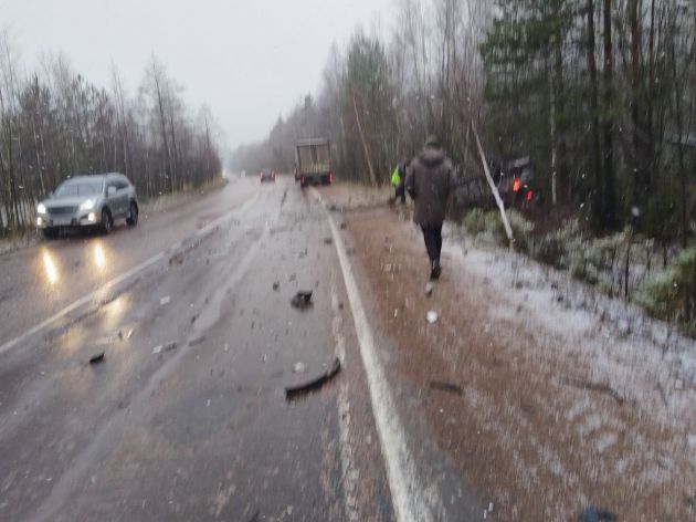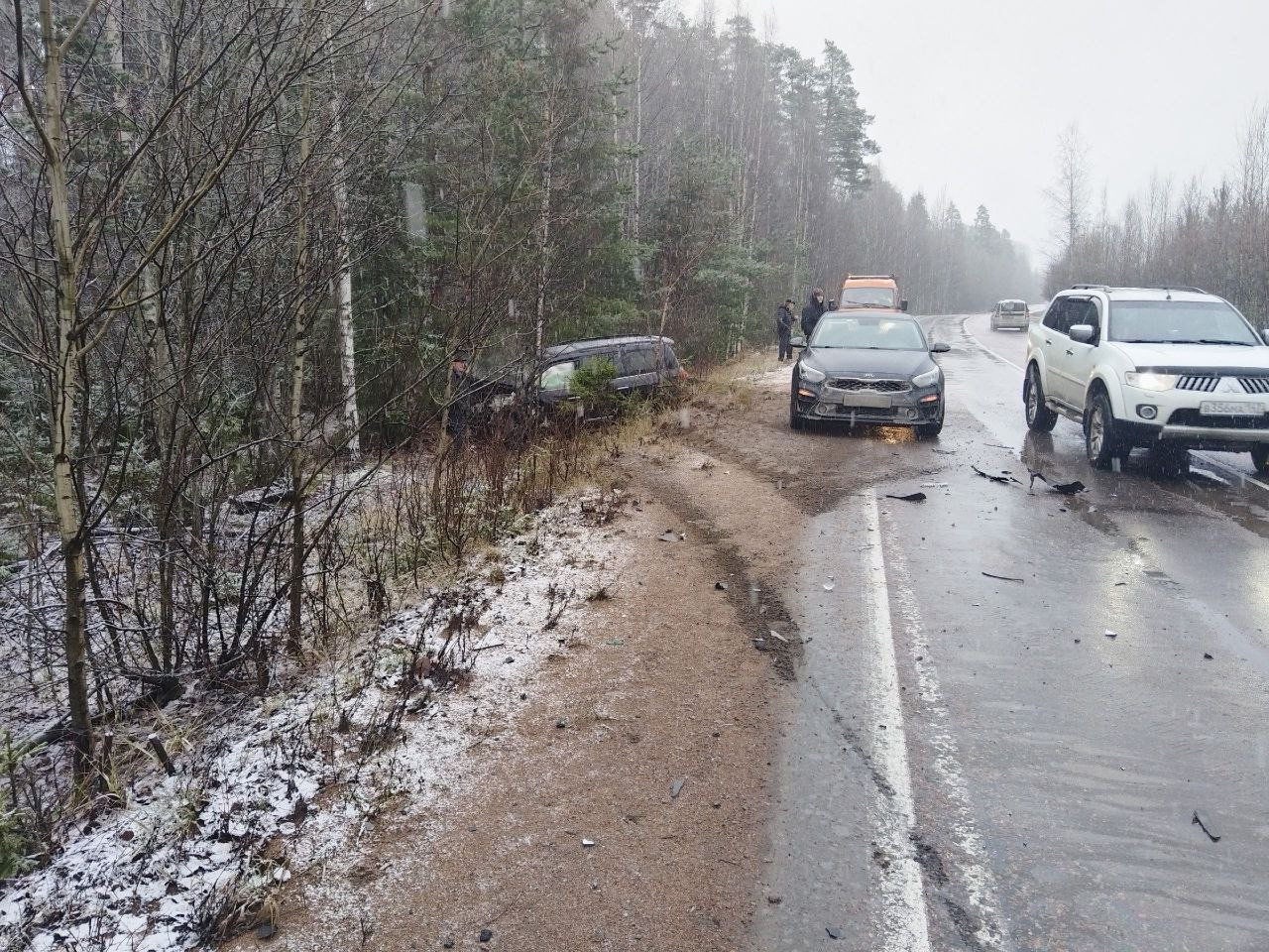 Два автомобиля улетели в кювет после удара на дороге в Выборгском районе Ленобласти. На месте потребовалась помощь медиков.