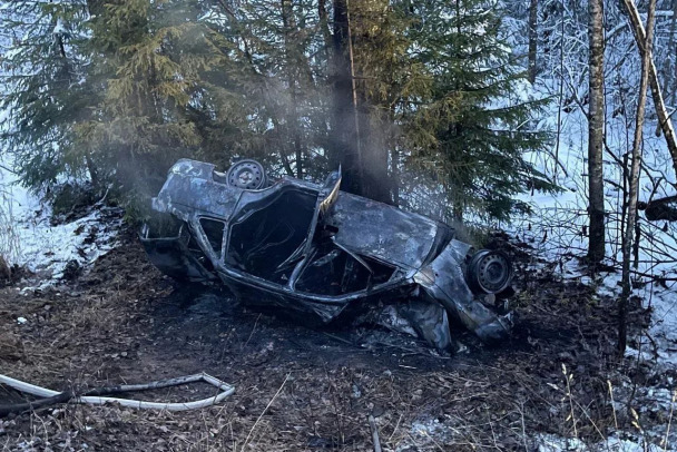 Внутри остался водитель, он погиб. Пассажирка машины смогла выбраться. Ее доставили в Лодейнопольскую больницу.