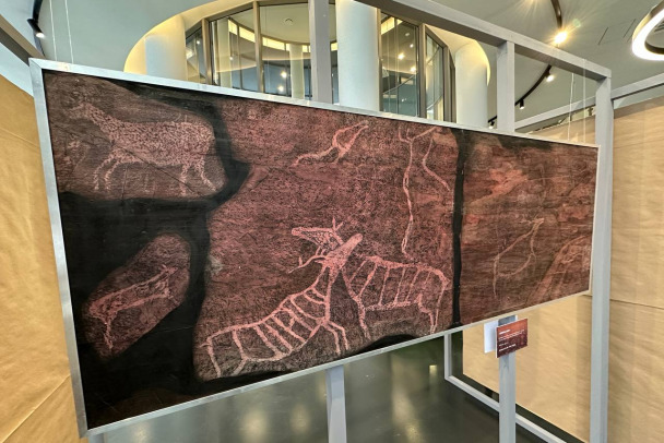 Посетители выставки также увидят копии древних наскальных рисунков, которые предоставил Хакасский национальный краеведческий музей имени Л. Р. Кызласова совместно с Государственным природным биосферным заповедником "Хакасский".