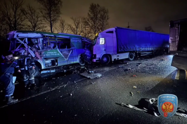 Как сообщили в Госавтоинспекции по Петербургу и Ленобласти, примерно в 20:50 пятницы, 28 ноября, произошла авария на Московском шоссе. По предварительной информации, 59-летний водитель грузового "Вольво", двигаясь в сторону мегаполиса, наехал на стоящие на выделенной полосе транспортные средства ПАЗ и КамАЗ, а также их водителей, которые меняли колеса.