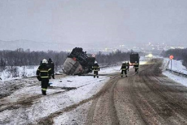 Не менее 25 тонн бензина и дизельного топлива залили дорогу после ДТП в Мурманской области.