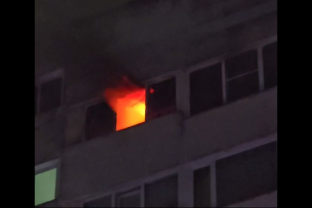 На кадрах видно, что пламя буквально вырывается из квартиры.