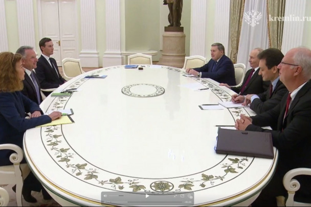 Журналист телеканала "Россия" Павел Зарубин за несколько минут до начала показал зал, где пройдет встреча. Он уточнил, что Кушнер впервые в Кремле.