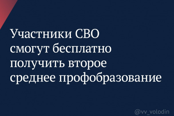 Госдума приняла закон, по которому участники специальной военной операции смогут бесплатно получить второе среднее профобразование.