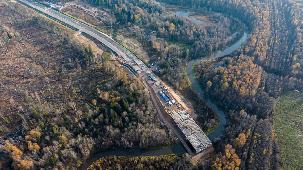 Параллельно идет строительство дороги в створе Пискаревского проспекта. Общая протяженность будущей трассы – больше 6,3 километра, часть которой будет шестиполосной. Сейчас построен полуторакилометровый участок и возведены четыре опоры моста через реку Охту.
