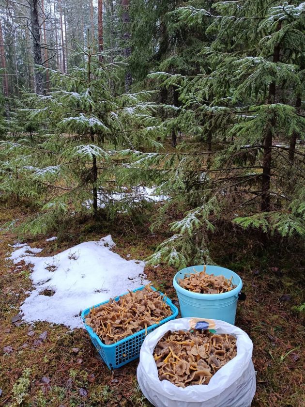 Правда в комментариях идут долгие споры о качестве "улова", ведь заморозки и снегопады уже были, так что остатки грибов стоят подмороженные.