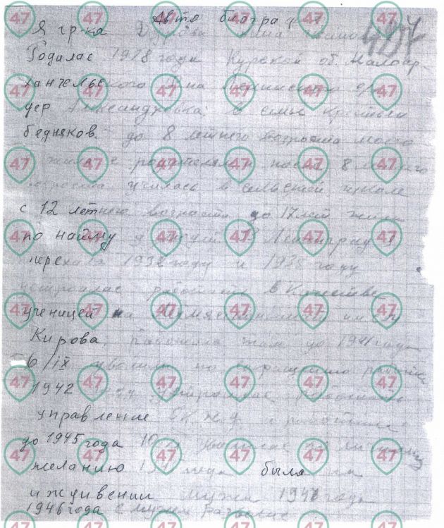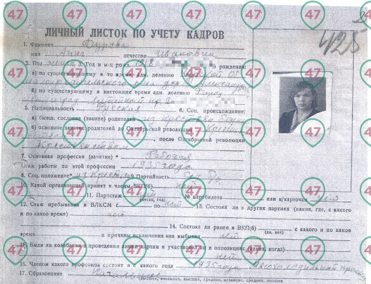 Оформляясь на работу курьером в Ленкурортторг, Анна, на школьном в клеточку листке, выводит автобиографию. Свои трудные годы детства - отрочества - юности - блокады и материнства претендент Дурова А. И. уместила в несколько строчек. Сегодня посты в "телеге" строчат размашистей. Журналист 47news оказался первым, кто спустя почти восемь десятков лет прочитал этот вылинявший клочок из архивного конторского гроссбуха.