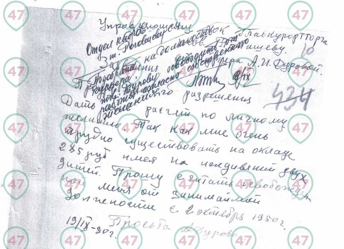 Впрочем, если посмотреть на само заявление об увольнении, которое будущая бабушка IT-миллионера Павла принесла в ленинградский отдел кадров в 1950-м году, то станет понятно, что женщине просто не под силу было на курьерские деньги тянуть лямку матери-одиночки.