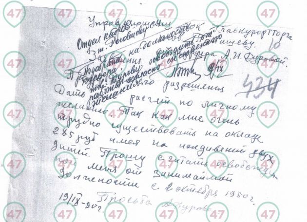 "Прошу вашего разрешения дать расчёт по личному желанию. Так как мне очень трудно существовать на окладе 285 руб. имея на иждивении двух дИтей...", - ставит перед тяжёлым фактом начальство 32-летняя курьер-уборщица Анна Дурова.