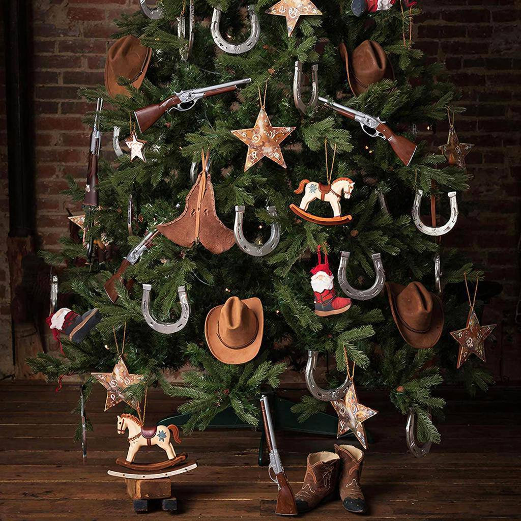 Дань символу года. Необычно будет выглядеть елка, украшенная подковами, или вдохновленная американским Западом. По восточному календарю предстоящий год – Красной огненной лошади, а ковбои, как известно, всегда почтительно относились к скакунам. В соцсетях много вариантов елок, под которыми вместо подарков – сапоги-казаки, а на макушках вместо звезд – шляпы. Также можно использовать в украшении соответствующие "горячие" цвета. Красный ассоциируется с зимними праздниками и подчеркивает торжественность момента.