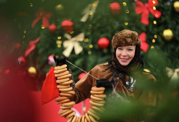 "Конфетки-бараночки". Важные элементы елки в русском стиле – съедобные. На дерево предлагают разместить баранки, сушки или маленькие крендельки. Из них сплетают бусы с помощью джутового шпагата. В качестве дополнения можно рассмотреть бантики, кружева или игрушки в виде сосулек. Приветствуется использовать конфеты батончики и петушки на палочке.