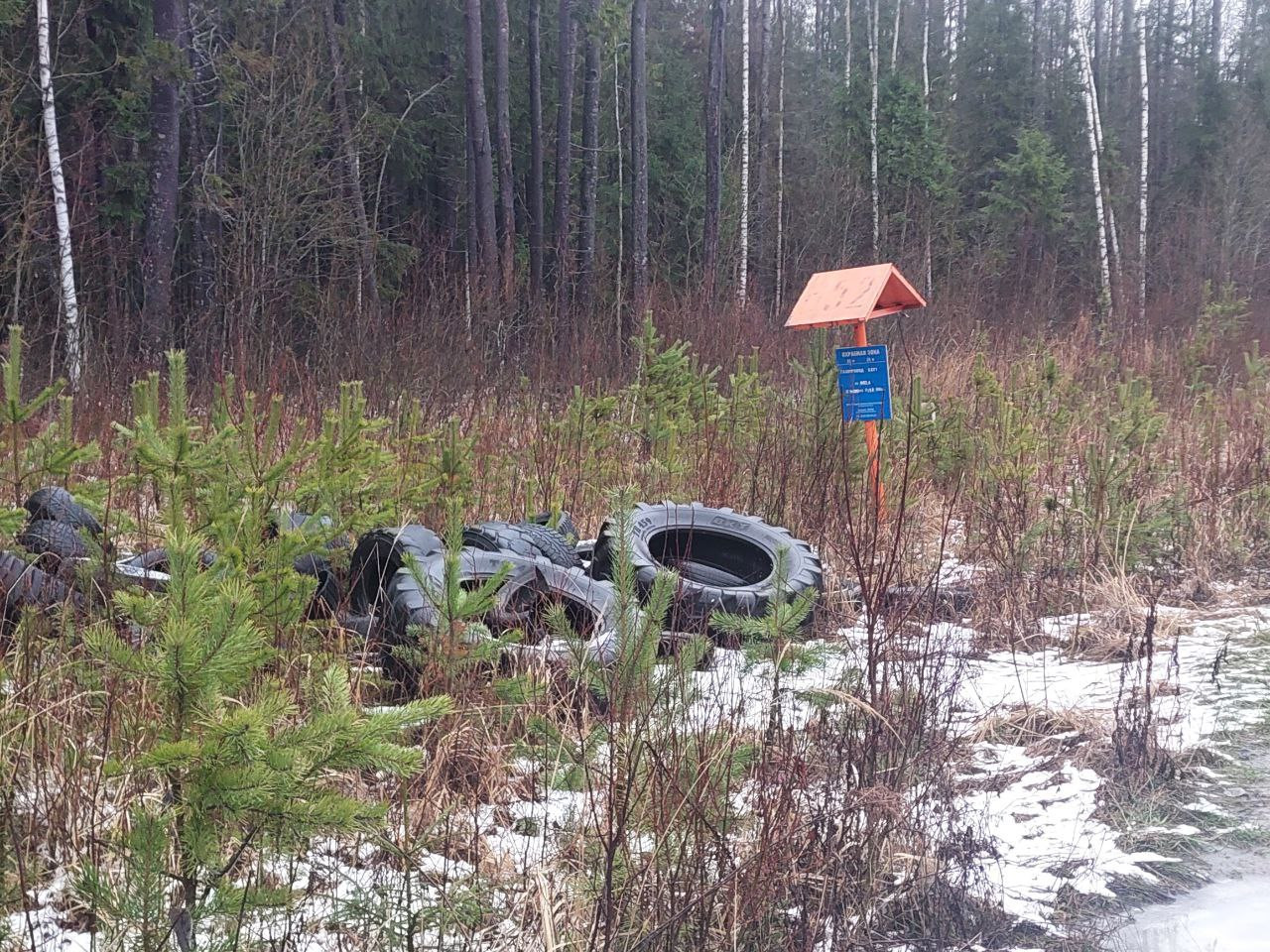 На месте – просека как сквозная дыра в лесу. По ней петляет не то, чтобы дорога, но по ямам с лужами еще можно проехать, только недалеко. По краям натыканы хвойные: елки с соснами вперемешку (сосны, кстати, пилить нельзя). Здесь же столбики разных мастей с надписями "Охранная зона". Судя по ним, мне выпало пилить елку на газопроводе. На нем же уместились сваленные автомобильные шины и гора мешков со строймусором. Я продираюсь через тугой кустарник, пытаясь среди поросли свою единственную.